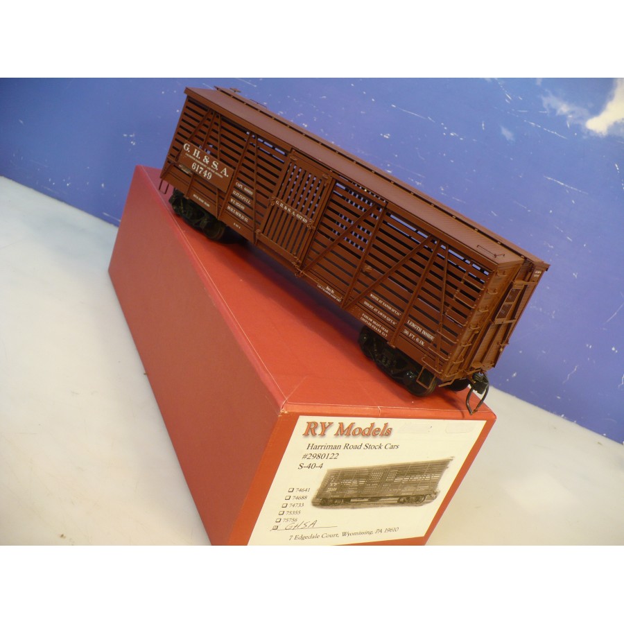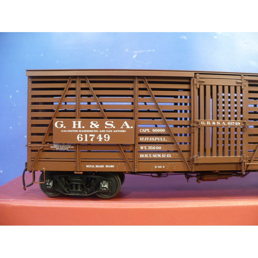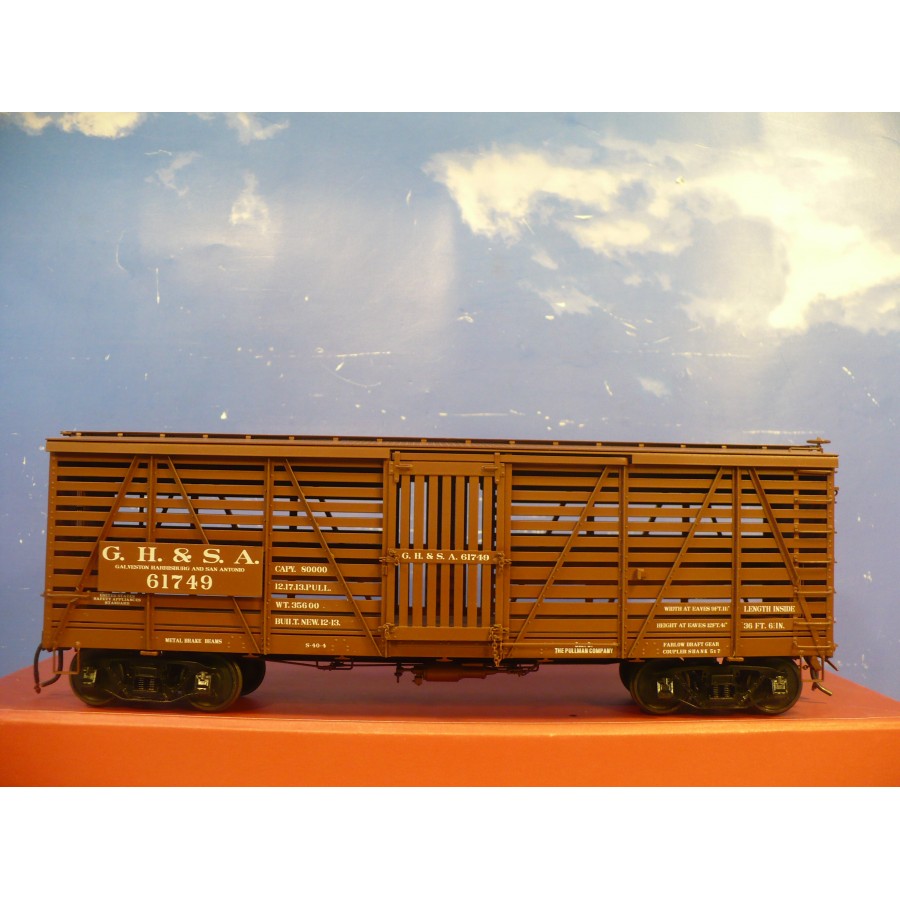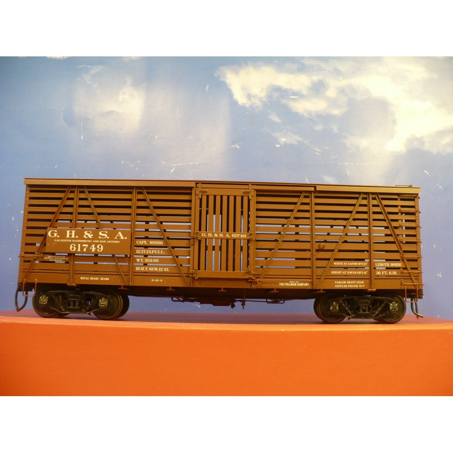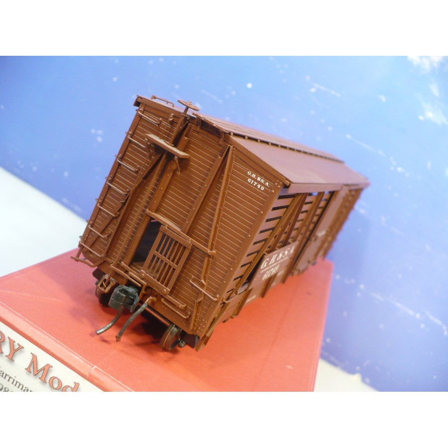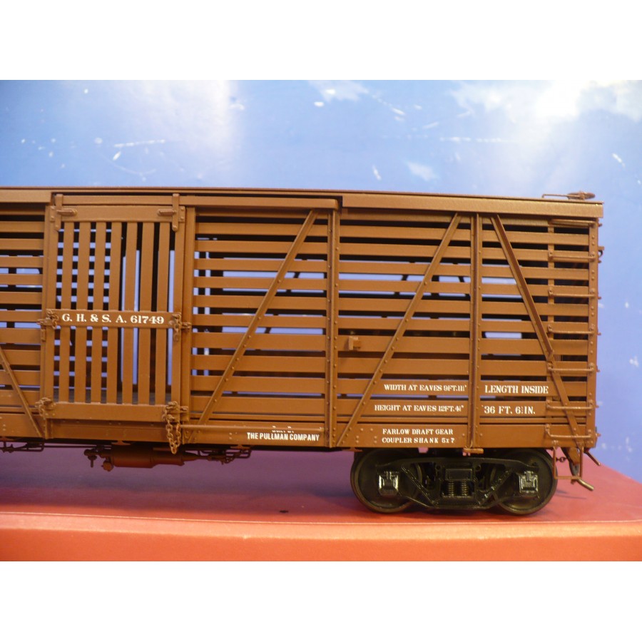 Like new in box Yoder GSHA stock car,beautifully factory painted. Magnificently detailed with underbody, working doors. Yoder sprung trucks and Kadees installed.