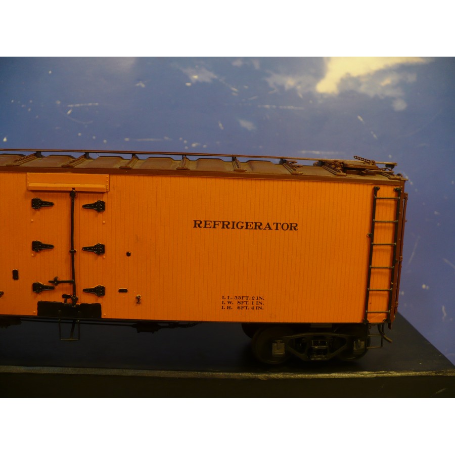 Excellent condition PL MDT wood reefer, beautifully custom painted. Magnificently detailed with underbody, working hatches. Yoder sprung trucks and Kadees installed.