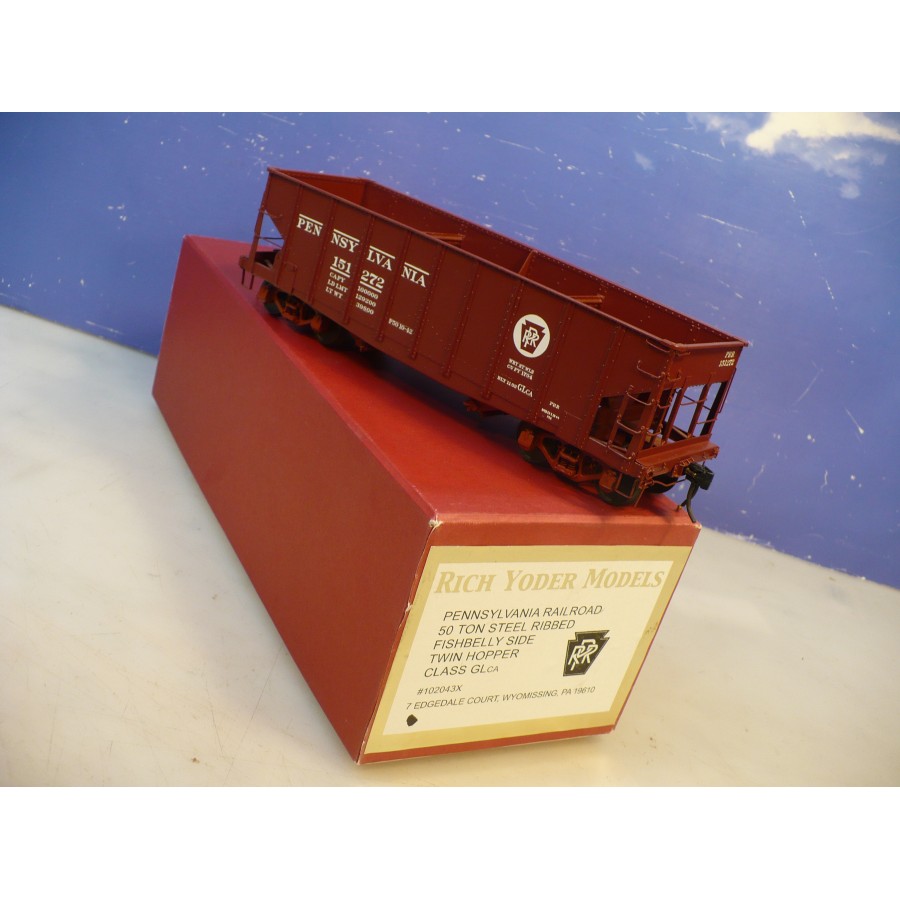 Like new in box Yoder PRR 2 bay, beautifully custom painted. Magnificently detailed. Yoder sprung trucks and Kadees installed.