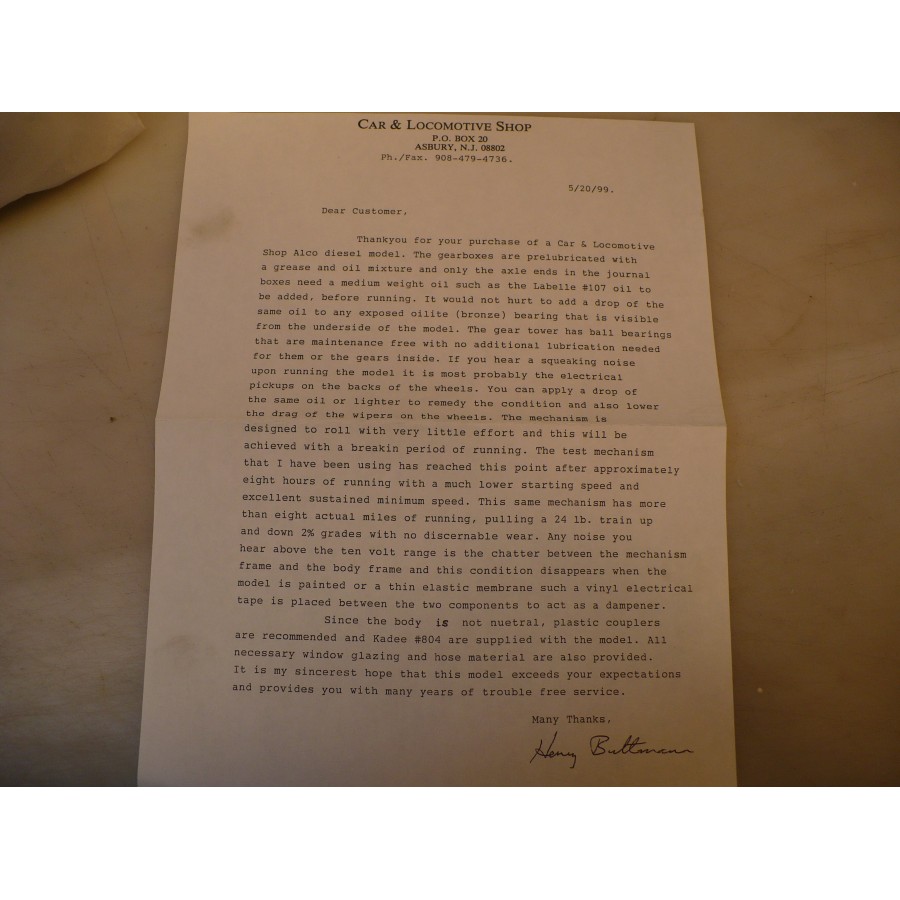 Like new in box CLS PRR RSD-12, beautifully factory painted, lit with lit number boards. Magnificently detailed with cab interior, working doors. Test run excellent, smooth & quiet. Complete with parts bag
