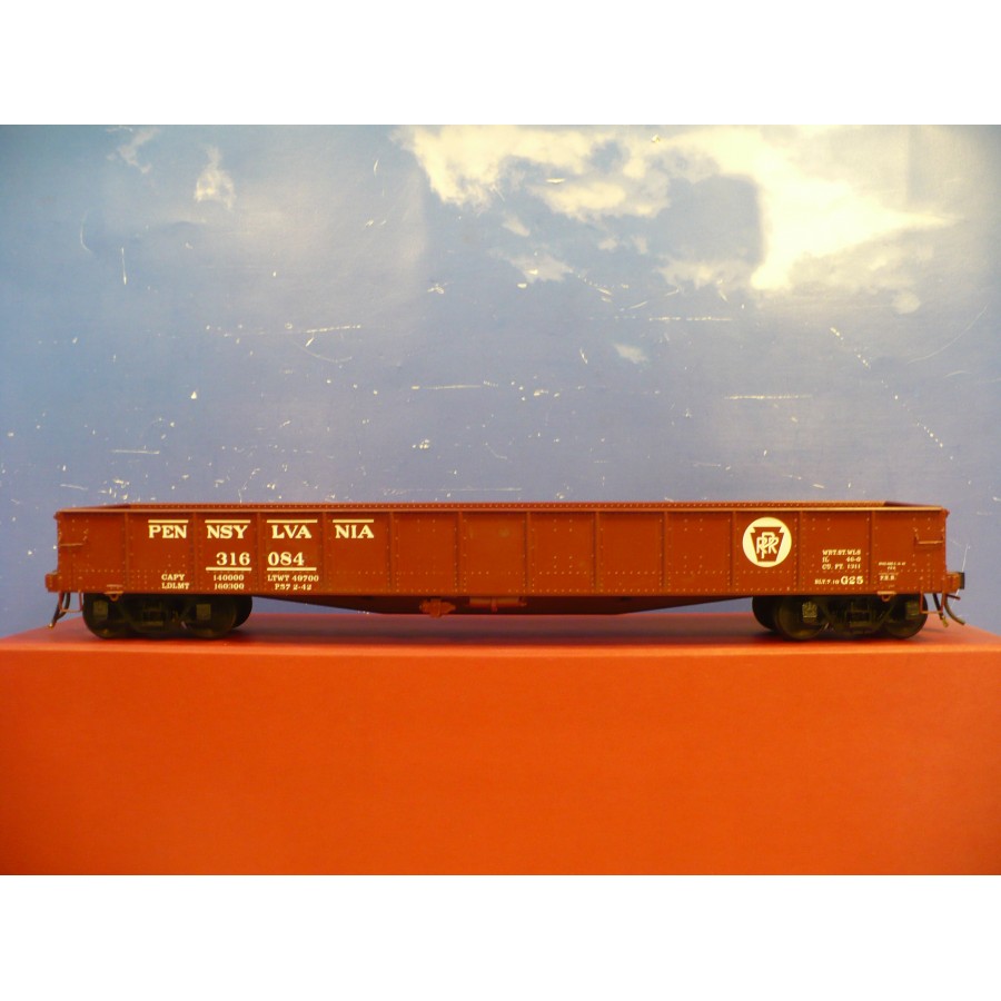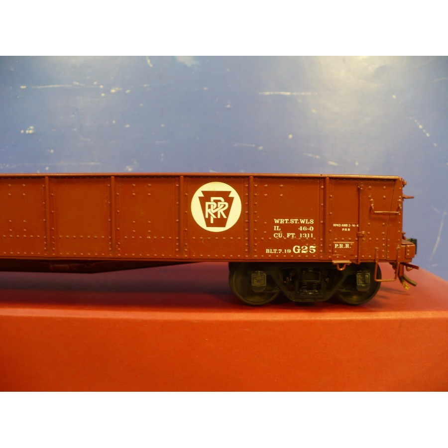 Excellent condition RY PRR USRA steel gondola with drop ends, beautifully factory painted. Magnificently detailed with underbody, working ends. RY sprung trucks and Kadees installed.