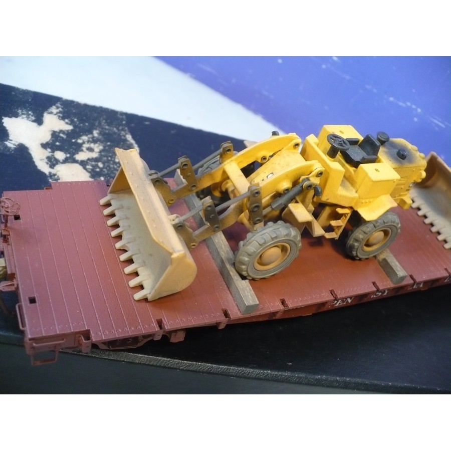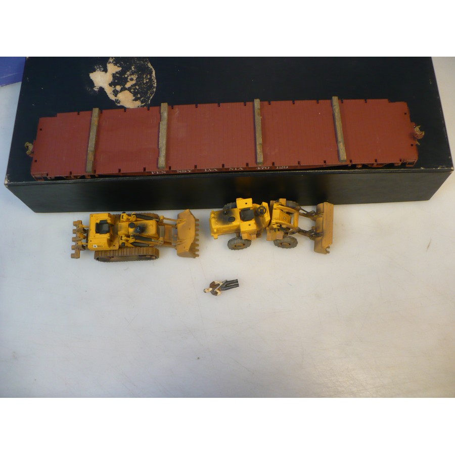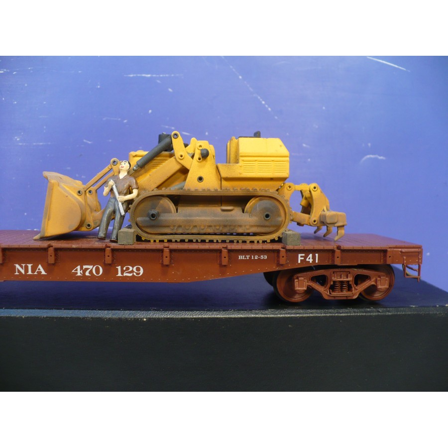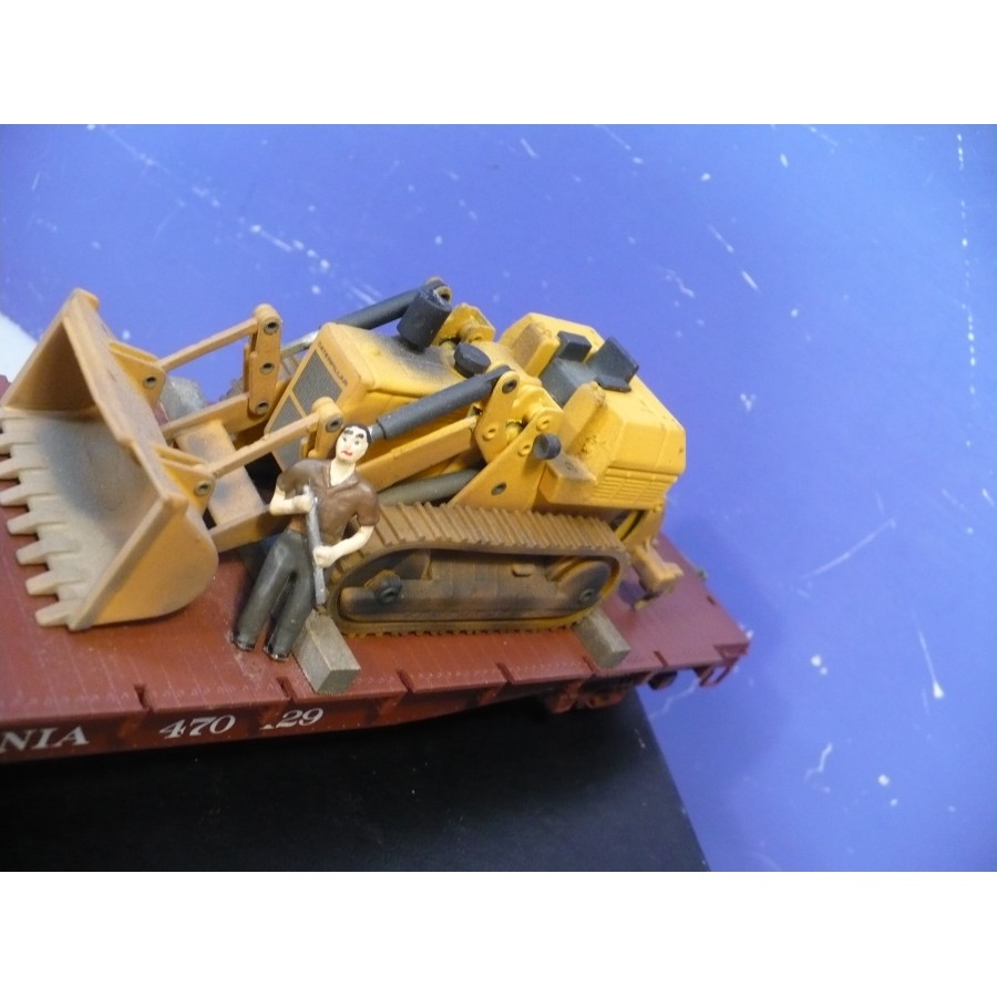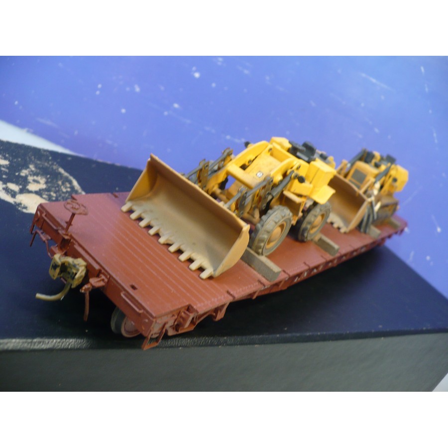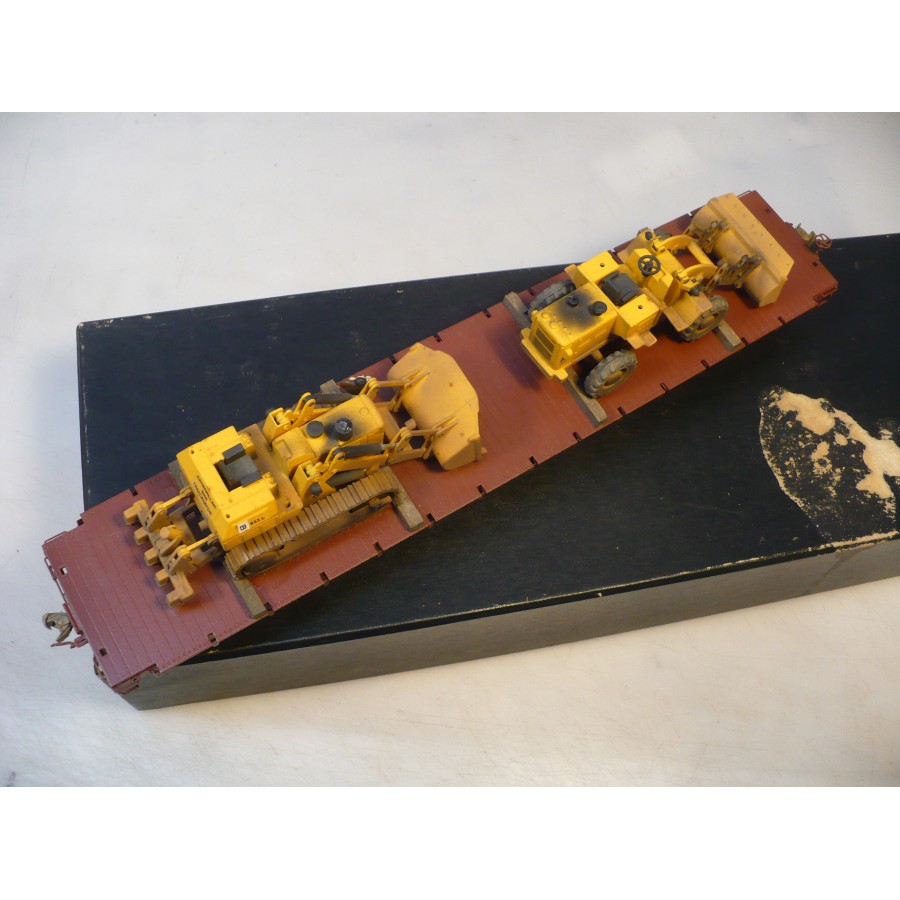 Excellent condition PL PRR 53' flat car, beautifully custom painted. Magnificently detailed with underbody and custom machinery load. PL sprung trucks and Kadees installed.