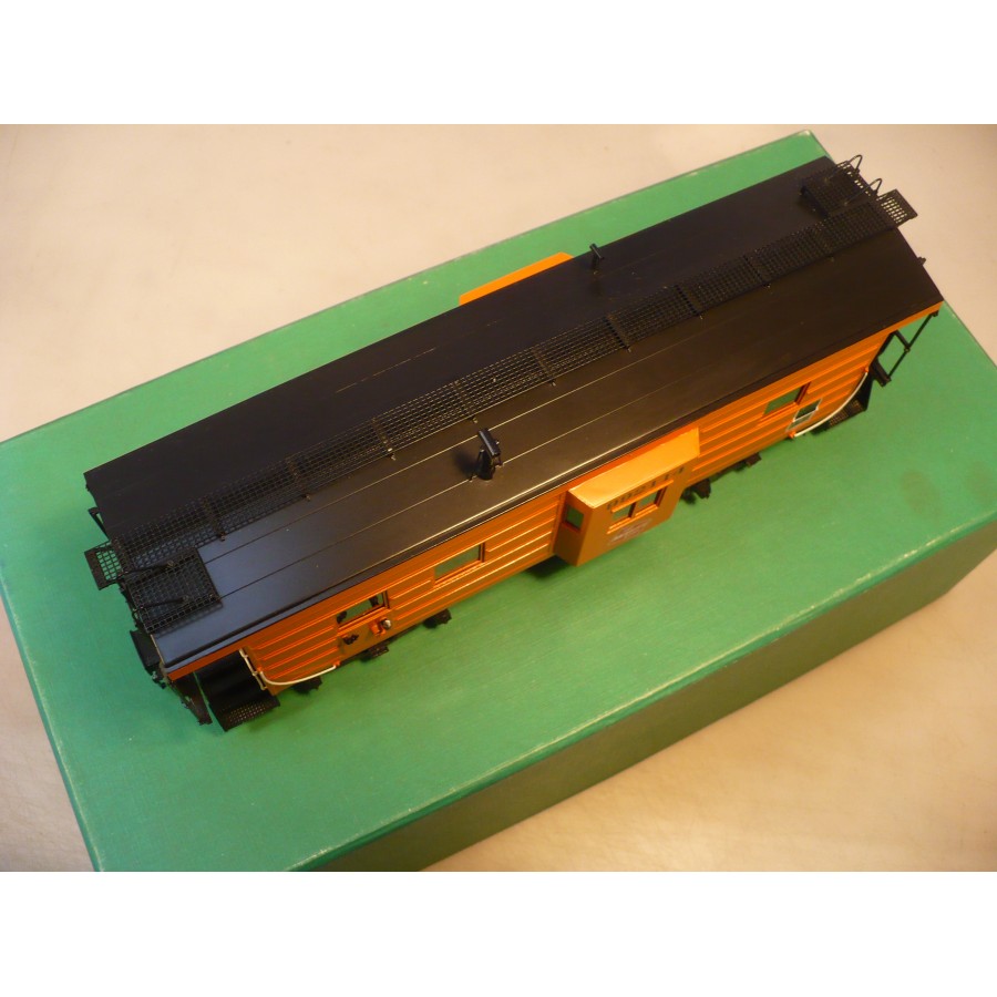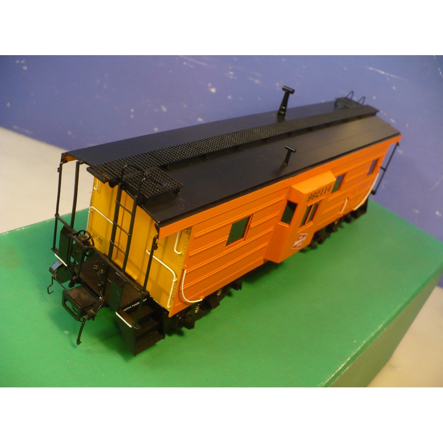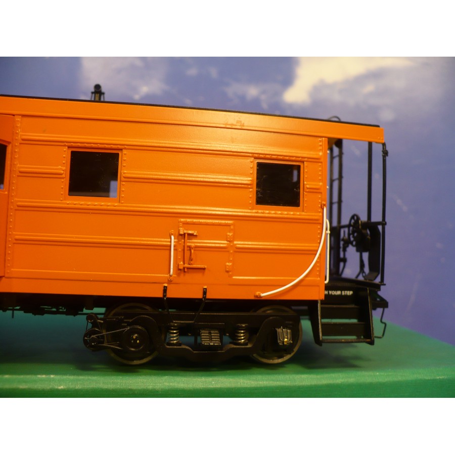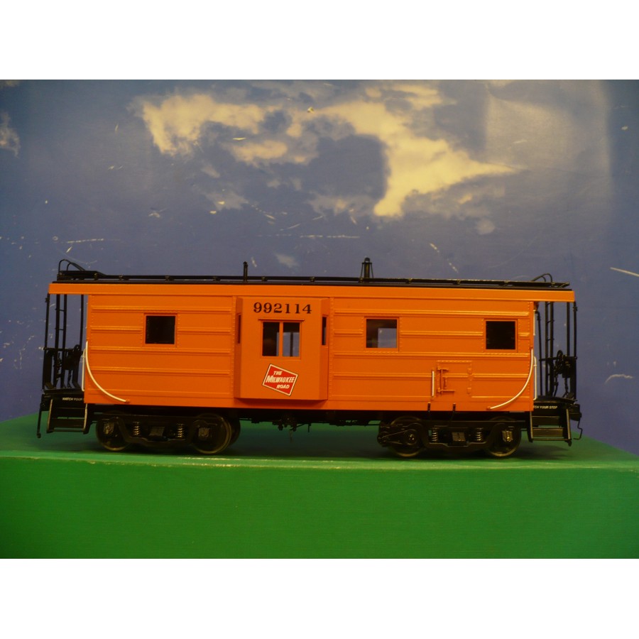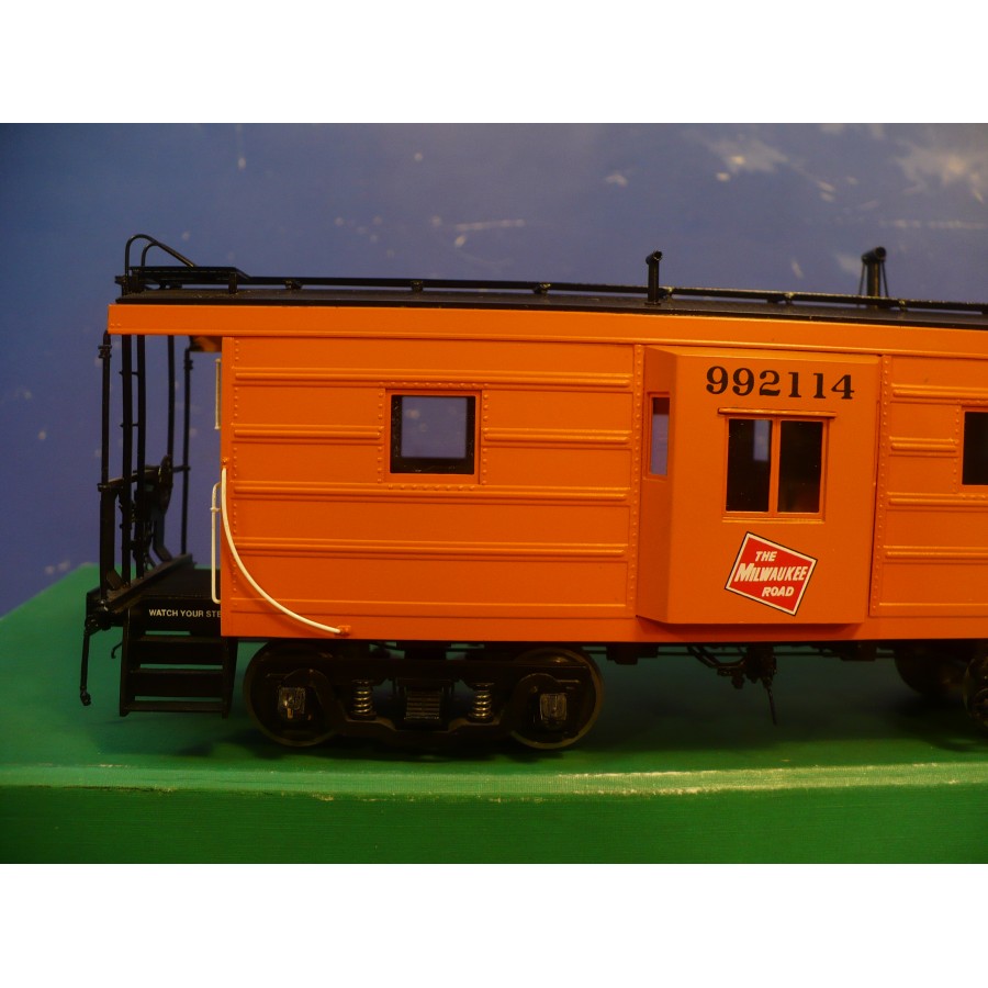 Like new in box Overland Milwaukee steel caboose, beautifully factory painted. Magnificently detailed with underbody. Overland sprung trucks installed. Complete with parts bag.